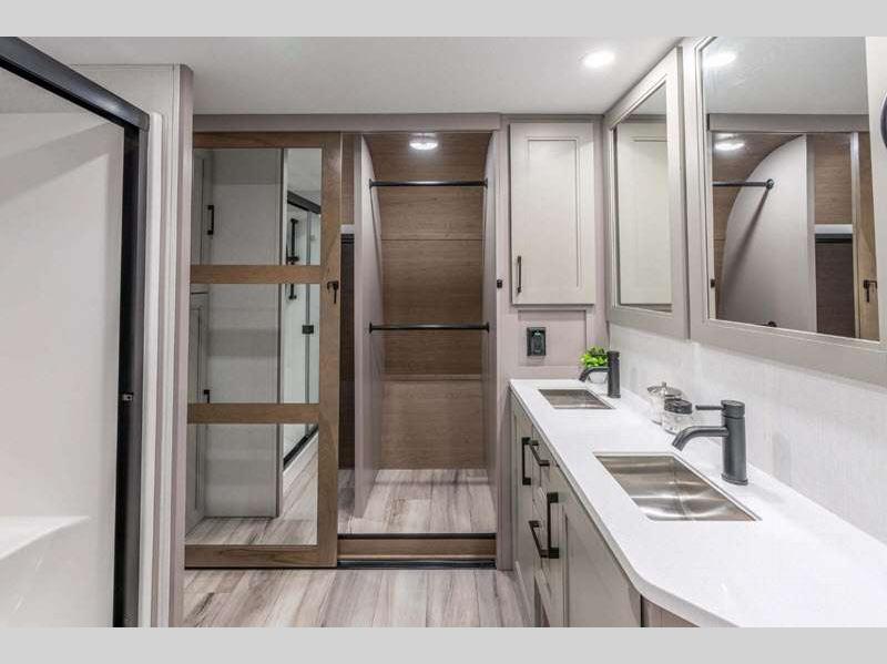 KZ Durango Gold fifth wheel G384MSQ highlights: Rear Living Dual Entry Bathroom ... more about Durango Gold G384MSQ