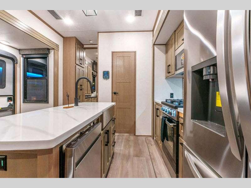 KZ Durango Gold fifth wheel G383RLQ highlights: Dual Sink Vanity Kitchen Island ... more about Durango Gold G383RLQ
