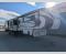 In the rear of the fifth wheel is a full wall entertainment center, dual opposing sofa slides, and theater seating for two allowing this area to be used as the game room, movie room, living space, or even a sleeping area.