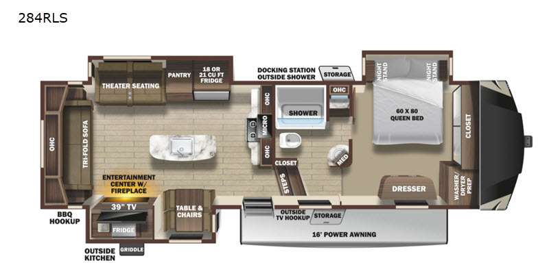 | TV Info | LR 39" LED HDTV | Awning Info | 16' Power with LED Lighting, FLXguard, Speakers, and Bluetooth Control |